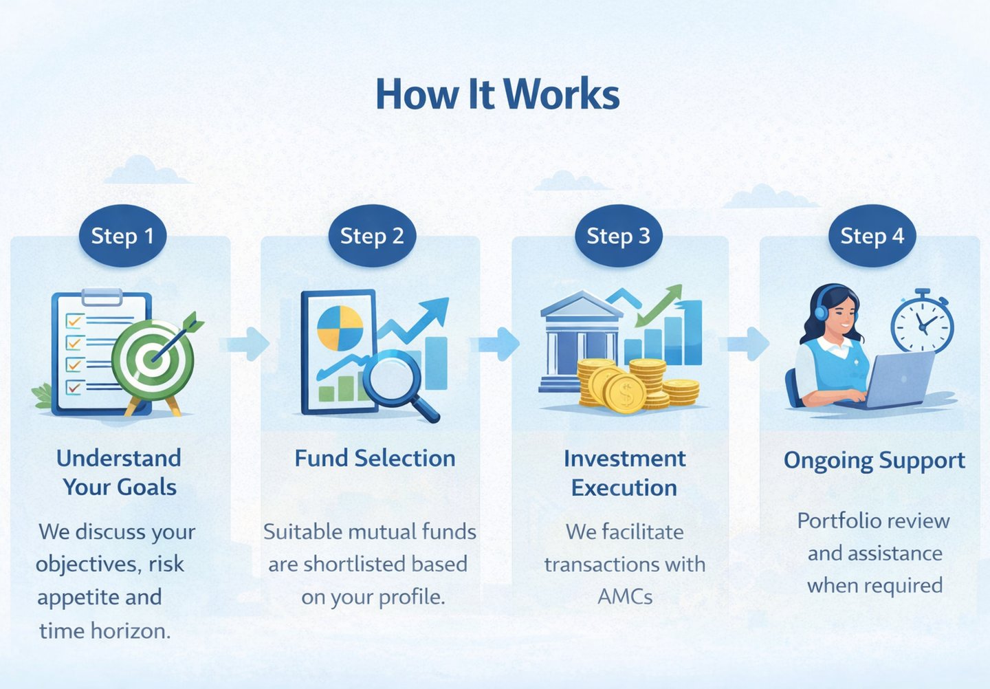 Build long-term wealth through carefully selected mutual funds aligned to your goals, risk profile and time horizon.